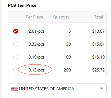 | 4 Layer PCB | $40.70 | $40.70 | $13.00 | $13.00 | $13.00 | $13.00 |
