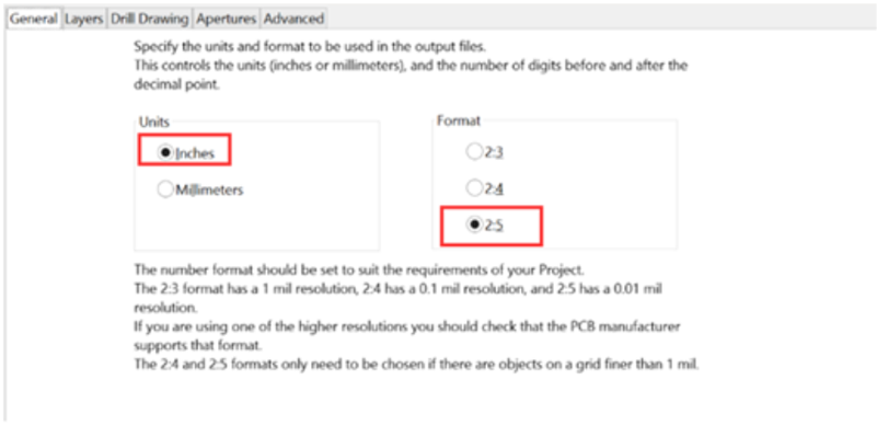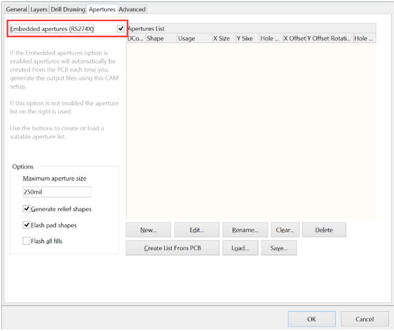 Please make sure to mark the "Embedded apertures (RS-274-X)" format.
