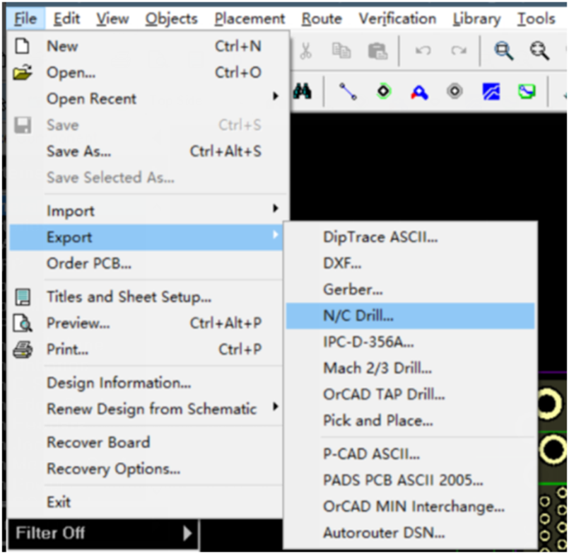 Step 3. After exporting the Gerber files, we need to export the NC Drill files.