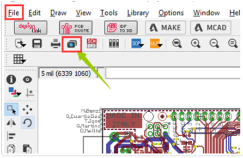Open your PCB layout (.brd) file in Eagle, Click the "CAM" button or choose "File -> CAM Processor". This will open the CAM Processor tool that is used to generate the files.