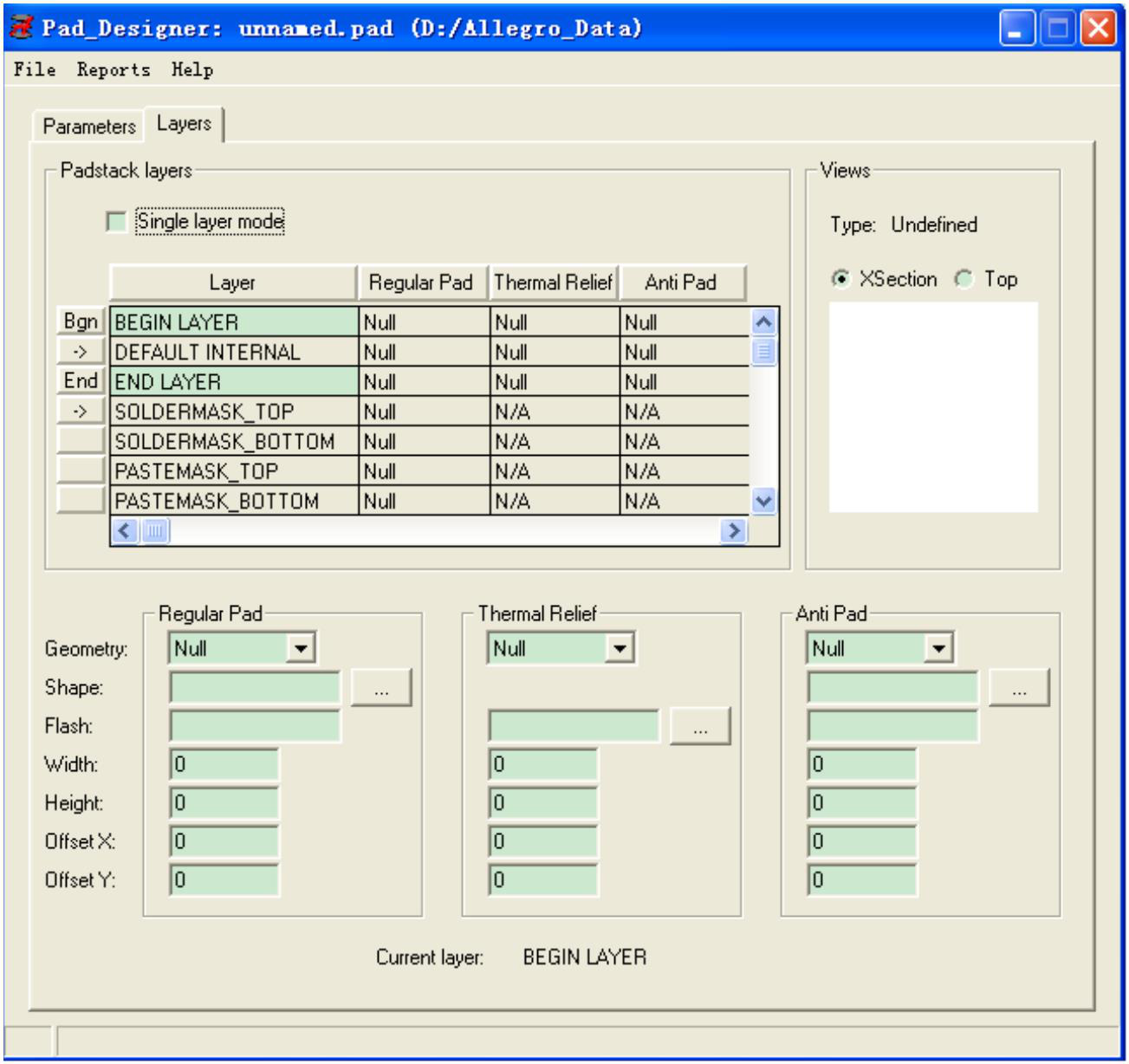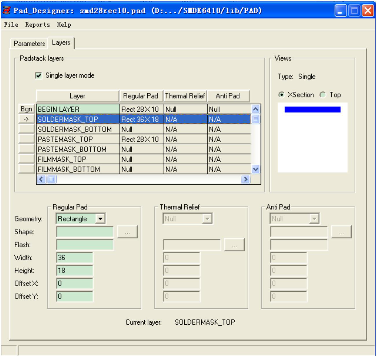 If you are making the pads of surface mount components, tick the Singel layer mode check box. Parameters to be filled in:
