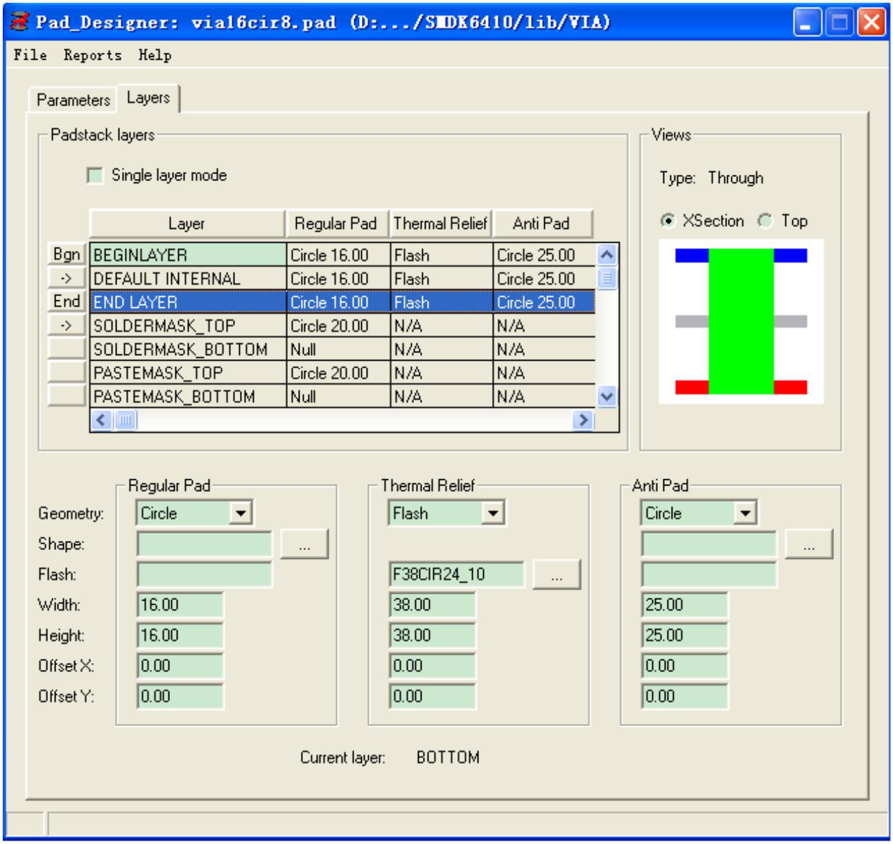 When making the pad, it must be noted that the size of the Anti Pad must be larger than the Regular Pad, otherwise, the copper-clad layer will cause a short circuit. Because allegro's file management is a bit mixed, each pad will be saved in a file, so when naming the pads, try to show the shape and size of the pads, so that it can be easily managed and reused in the future.