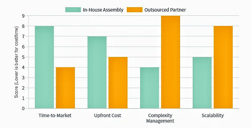 Outsourcing box build assemblies essentially transforms the manufacturing process from a high-risk operational burden (i.e., managing cross-disciplinary inventory, labor, and quality) into an scalable strategic asset. By reliably externalizing production at scale, the OEM's focus can shift from managing production logistics to pure product innovation and market penetration, thereby strengthening the company's overall strategic focus.