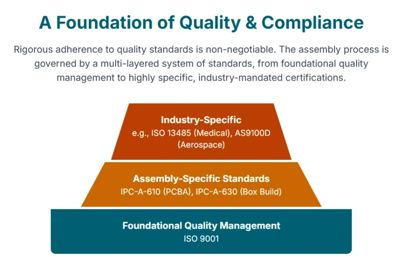 It is noteworthy that the quality assurance structure for box build assembly is more complex than for mere PCBA. Traditional PCBA quality focuses on the IPC-A-610 standard (Acceptability of Electronic Assemblies), but a complete box build must extend its focus to cable standards (IPC/WHMA-A-620C) and enclosure standards (IPC-A-630). This requirement for three distinct specialized IPC standards means that effective Box Build Assembly necessitates a highly diversified set of professional skills and a robust Quality Assurance structure, clearly differentiating the professional domains between pure PCB/PCBA companies and providers offering comprehensive Electronic Manufacturing Services (EMS).