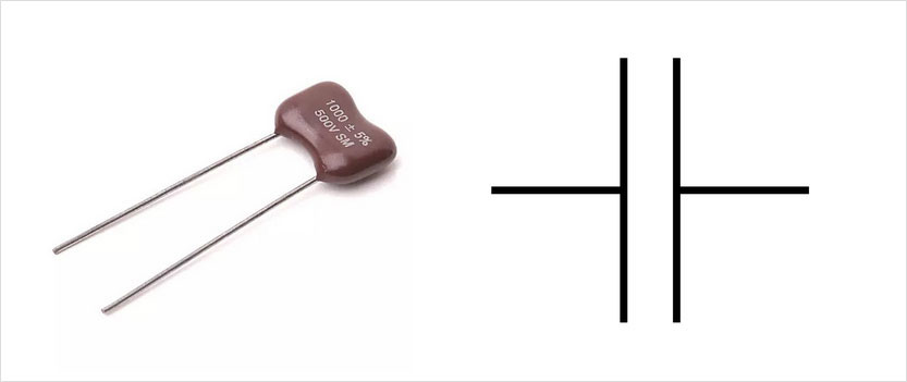 In circuit designs, disc ceramic capacitors are rectangular or oval with electrodes on opposing sides. The capacitance value and voltage rating will always be labeled, however the form and symbol may change based on circuit diagram norms.