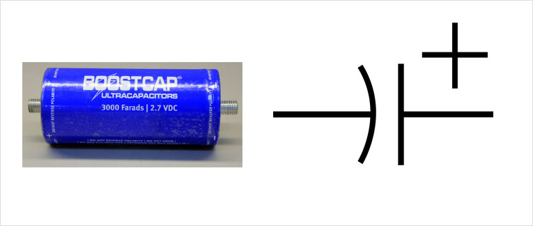 Ultracapacitors, sometimes known as supercapacitors, store and release energy quickly. The capacitor's ability to store energy is shown in circuit diagrams by two parallel lines with a curved line connecting them.