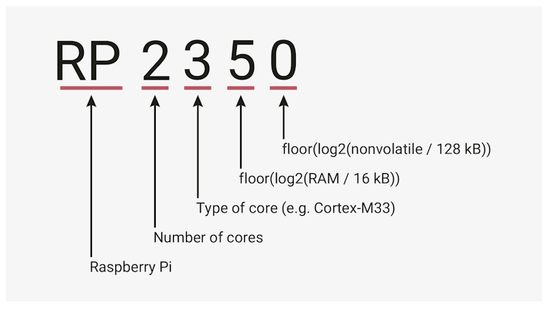 Naming convention for RP series of MCUs. Source: Raspberry Pi