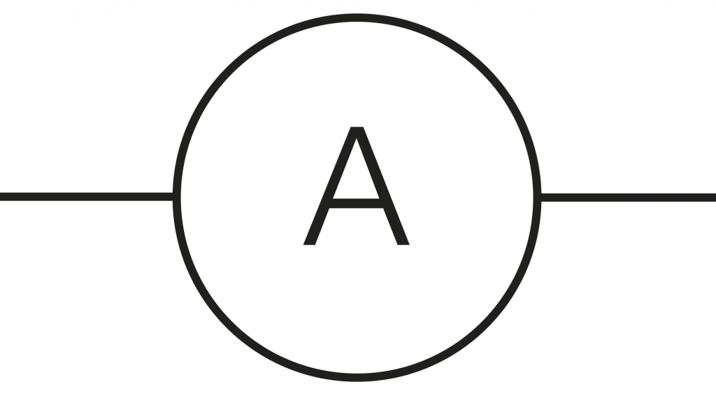 Ammeter: a device for measuring electric current in amperes, either direct (DC) or alternating (AC). Due to the fact that a shunt running parallel to the meter carries the majority of the current at high current values, the ammeter can measure a wide range of current values. A circle with a capital A inside it serves as the icon for an ammeter in circuit diagrams.