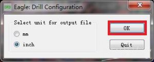 Step #2: A dialogue box will appear with a toggle consisting of two options mm and inch. Select inch and click OK. This will generate the drill file.