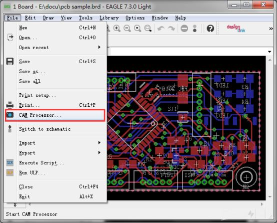 Step #6: Now, again in the "CAM Processor" popped up window, hit File then Open then Job, from the drop-down menu select GERBER_RS274X and click Process Job to generate the Gerber file