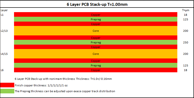 6 Layer 1.00mm 1.0 Oz PCB Stack-up