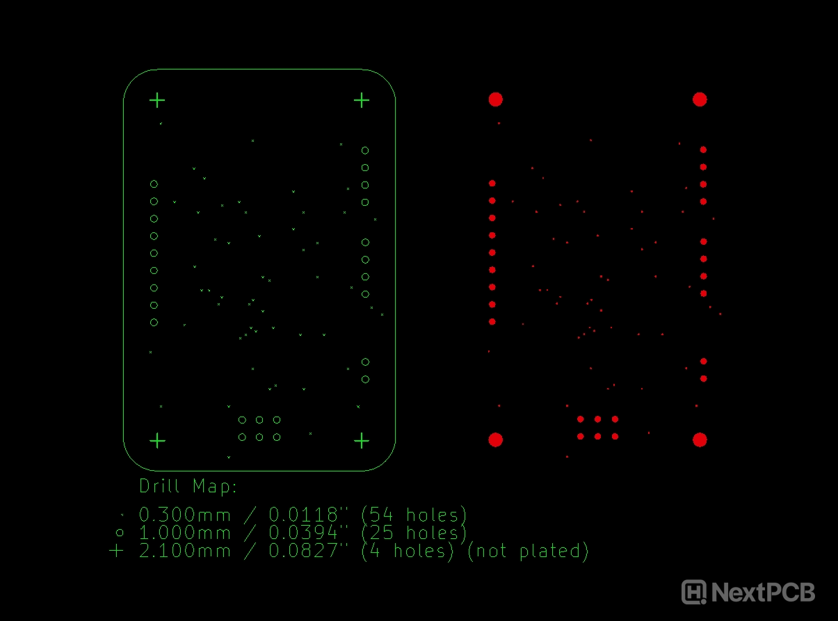 Generate Drill Map: KiCad provides the option to export the drill map. This is a Gerber layer that provides location and size information graphically rather than literally. Unlike Excellon drill files, drill maps can contain extra information such as the nature of the drill holes, the quantity and size in written word. However, Excellon drill format files are more widely accepted compared to drill maps, and typically a manufacturer that can handle drill maps will also accept Excelllon drill files, but manufacturers that ask for Excellon drill files will not necessarily accept drill maps, as it may require additional manual input.