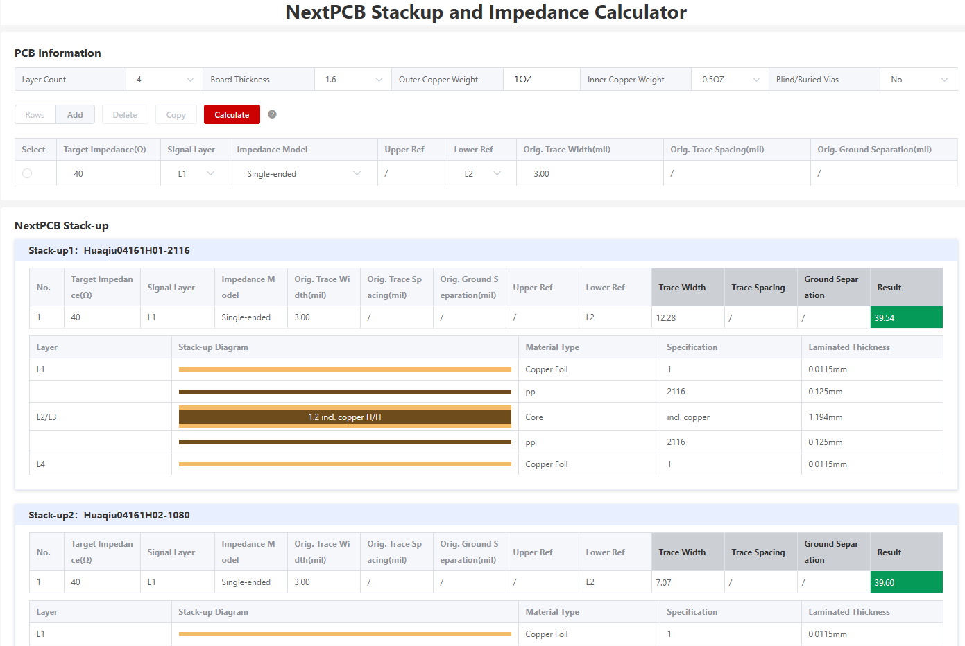 To simplify impedance calculations, NextPCB offers an online PCB Impedance Calculator. With over 15 years of experience in PCB manufacturing, NextPCB's tool enables designers to quickly and accurately determine impedance values, ensuring optimal performance in high-frequency applications.