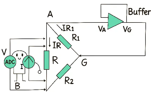Guarding is fundamental to ICT. It isolates the component under test (CUT) from parallel circuit paths using a low-impedance buffer to force a "guard node" to the same potential as the test node (VG=VA). This diverts leakage currents (IR₁≈0), ensuring the measured current (I) flows only through the CUT. Thus, R = V/I accurately, unaffected by parallel resistances (R₁, R₂). The ICT system automatically selects optimal guard points based on test programming.
