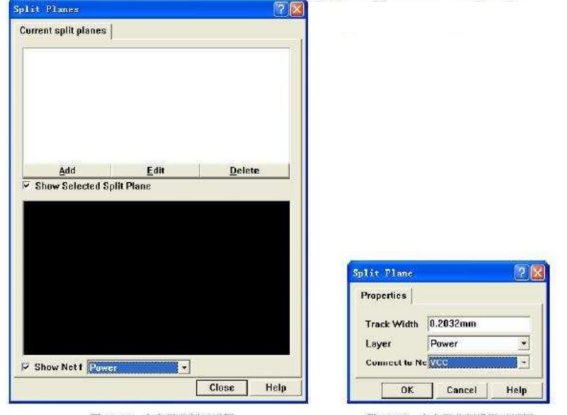 Select [Design]/[Split Planes...] command, the internal electrical plane splitting dialog box shown in Figure 4 pops up, click the Add button, and the internal electrical plane splitting setting dialog box shown in Figure 5 pops up. First, select the 12V network, click OK