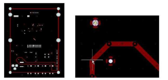 When drawing the borderline of the frame, you can press "Shift+Spacebar" to change the corner shape of the trace, or press the Tab key to change the properties of the inner electrical layer. After drawing a closed area (the start point and the endpoint coincide), the system automatically pops up the inner electrical layer segmentation dialog box shown in Figure 9, in which you can see a segmented area, in the PCB editing interface As shown in Figure 10. After adding the internal electrical layer, zoom in on a certain 12V pad, you can see that the pad is not connected to the wire, but a "+" appears on the pad, indicating that the welding disk has been connected to the inner electrical layer. Switch the current working layer to the Power layer, and you can see the connection status of the pad on the internal electrical layer. Since the internal electrical layer is usually a whole piece of the copper film, the part shown around the pad will be corroded during the manufacturing process. It can be seen that the GND and the internal electrical layer are insulated. After adding a 12V area to the internal electrical layer, you can also add other networks according to actual needs, that is, divide the entire Power internal electrical layer into several different isolated areas, and each area is connected to a different power network.