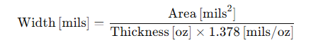You can rearrange the formula to derive the trace width by finding the cross-sectional area needed for the selected current to pass safely.
