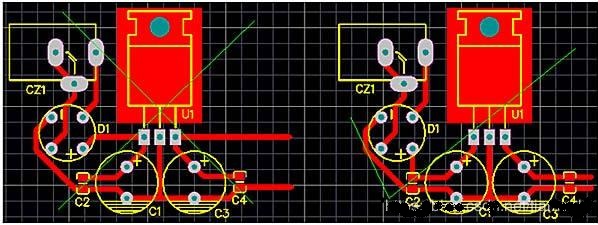 When developing the PCB, the design of the elements needs to be portable. To make all the links as brief as feasible, it is needed to set out the parts as well as traces according to the practical connection of the schematic parts. In this power supply layout, it is first fixed, refiltered, filtering system, and afterward supported. After the voltage is supported, it is the storage space capacitor. After streaming with the capacitor, it is made use of to power the circuit behind. Number 2 is a PCB representation of the above schematic, both layouts are comparable. The left and also best representations are a little various. The power supply left wing is fixed and also straight most likely to the input pin of the regulatory authority chip. After that, it is the voltage regulatory authority capacitor. The filter impact from the capacitor is a lot even worse. There are likewise issues. The picture on the right is a much better photo. We should not just take into consideration the circulation instructions of the favorable power supply, yet additionally need to think about the reflow trouble. Usually talking, the favorable power supply line as well as the ground return line must be as close as feasible per various others and also near each other.