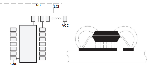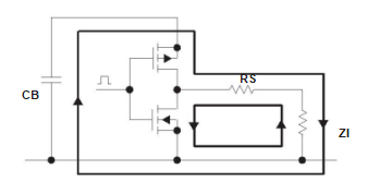 From the point of view of the EMC of the circuit shown, CB, in this form, is unable to significantly reduce the radiated interference. The long supply lines – which, in practice, are always present – with the relatively large areas that these lines surround, form an effective antenna. At the frequencies present, an unacceptable level of interference is radiated.