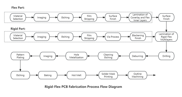 Below is a brief production flow diagram for rigid-flex PCBs: