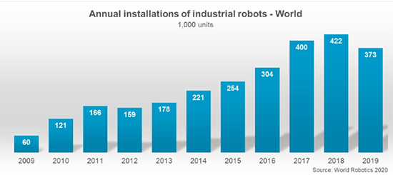 According to the "2020 Global Industrial Robot Report" released by the International Federation of Robotics (IFR) in September last year, the number of industrial robots operating in factories worldwide reached 2.72 million units, an increase of 12%. In 2019, sales of new robots remained at a high level, with global shipments of 373,000 units. Compared with 2018, this figure is down 12%, but it is still the third-highest sales volume on record.
