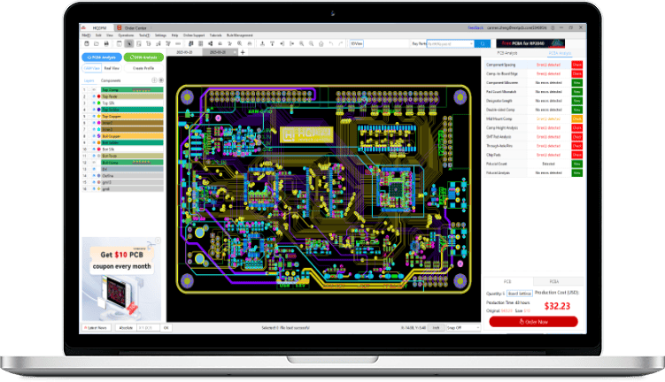 Easily visualize your design and make sure your file contains all data necessary for manufacture.