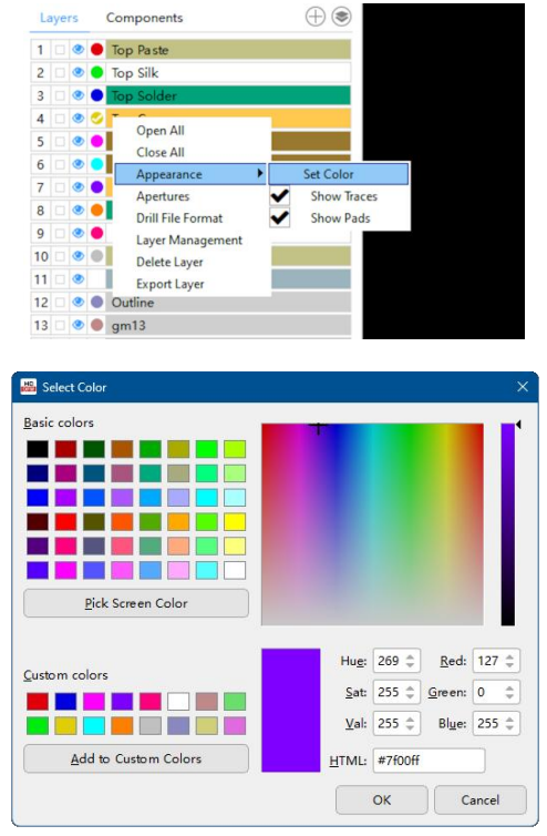 Choose [Compare Existing] to compare files that have already been imported in HQDFM. This is useful if you need to compare layers in the same set of Gerber files or compare changes made in HQDFM to individual layers.