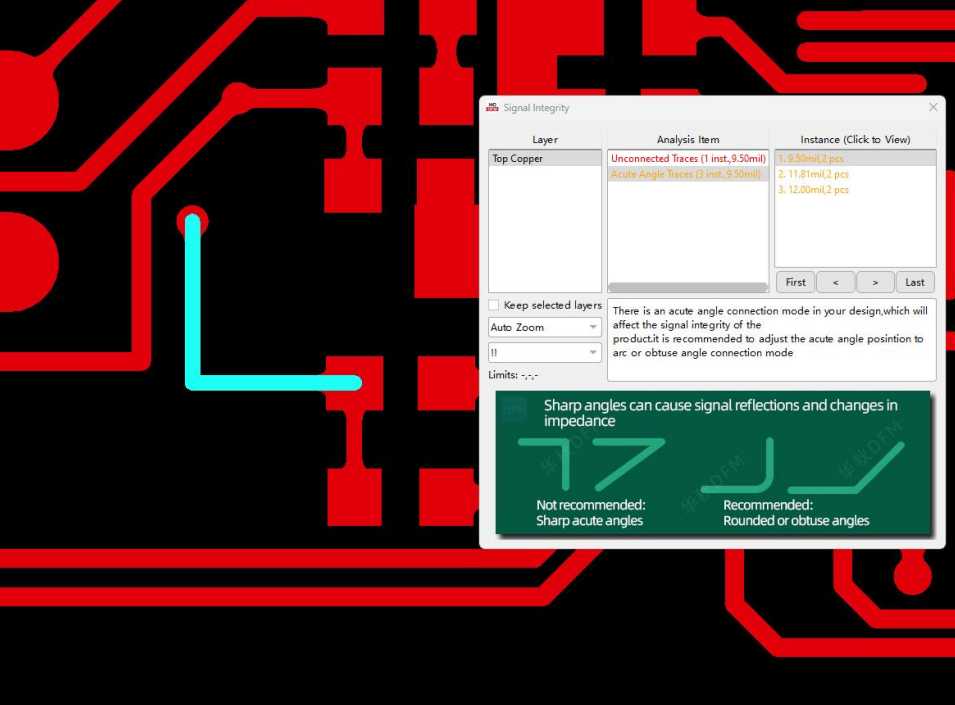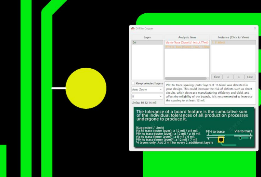 - Accuracy of error reporting may depend on the quality of the provided data, which is determined by the ECAD software.