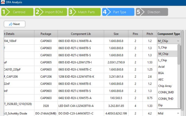 DFA Analysis: PCBA Design for Assembly (DFA) analysis for populated electronic assemblies (including the PCB and electronic components) using HQDFM algorithms. Requires the Bill of Materials (BOM) and Centroid (pick-and-place) data in addition to PCB production data.