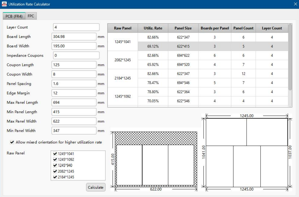 PCB designers can use the utilization rate calculator to optimize the dimensions of their boards or panel for larger batch runs where waste can quickly accumulate.