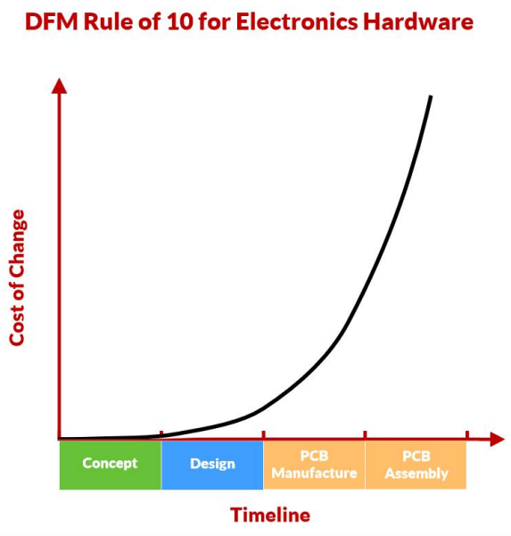 The DFM Rule of 10 or 10x rule highlights how the cost of fixing a design error increases exponentially the later it is caught. This can be applied to the entire product development cycle but is also apparent during a single production run.