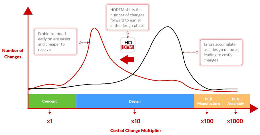 Figure 1-2: HQDFM impact on reducing development costs by detecting issues earlier in the design phase
