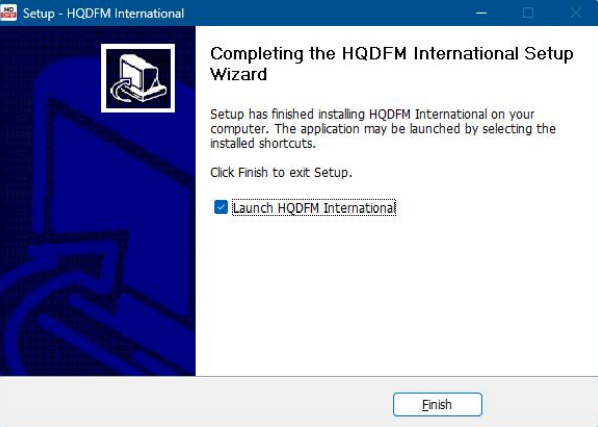7. Once installation is complete, click [Finish] to close the wizard and launch HQDFM.