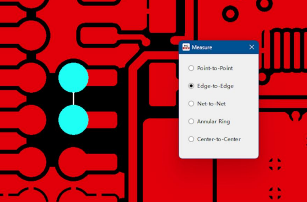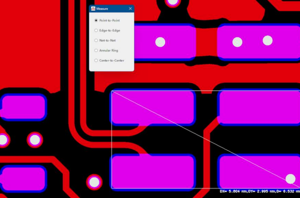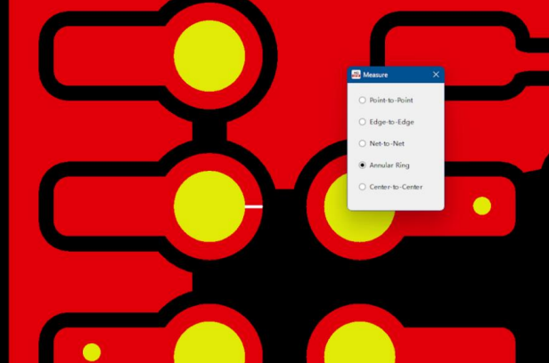 Gerber Viewer: Dedicated workspace for displaying PCB graphical data including navigating individual layers with zoom, pan and snap options, dimensional analysis and various viewing modes such as realisticand CAM modes.