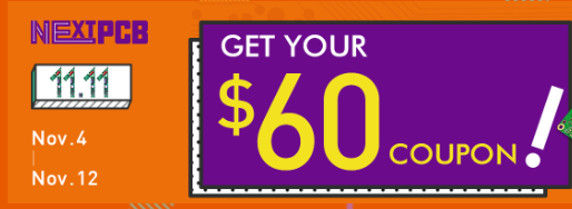 Thanks for your trust and support in NextPCB as always.We are glad to tell you that as chinese version of Black Friday— the “Double 11” is coming. NextPCB provides a huge offer of $60 coupons to express our gratitude to your company