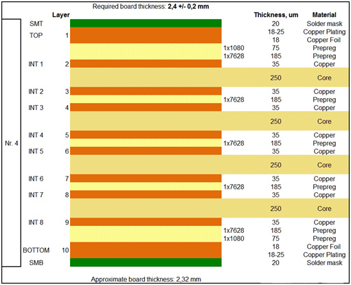 A 10-layer stack-up could be needed for the most demanding uses. Usually, a layout looks like this: