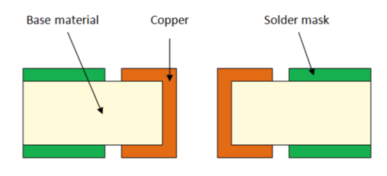 The easiest production method is to have all vias open from both sides, and then the vias will be clean without any contamination and solder mask. But this method has the risk of short circuits. The practical fabrication way is covering the vias with solder mask on both sides, which may exist a chance that the via-hole is not completely closed and remaining a small opening in the middle. And it may cause possible failures in the usage of the PCB if the chemicals get stuck in these small opening in subsequent processes.