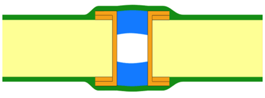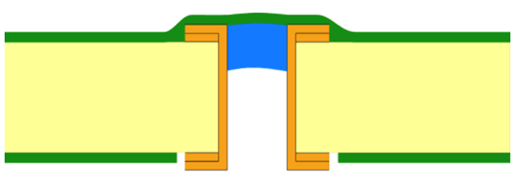 1. The via is partially filled with non-conductive media and then overprinted with conventional solder resist from one side, and the vias on the other side of the PCB is open.